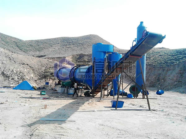 2、采用順流干燥方式,煙氣與濕物料同一側進入干燥機,可以利用高溫煙氣獲得很高的蒸發強度,烘干機出口溫度低、熱效率高;